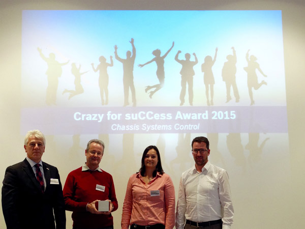 Im Frühjahr 2015 durfte sich ein kleiner, aus mehreren Hundert Lieferanten ausgesuchter, Kreis dem Geschäftsbereichs Chassis System Control im Rahmen der CC Technology Days präsentieren; diese fanden im April und Mai in Suzhou/China, Yokohama/Japan, Ply-mouth/USA und Abstatt/Deutschland statt. 20 dieser Lieferanten erhielten darüber hinaus die Möglichkeit, eine Präsentation vor dem Top-Management des Geschäftsbereichs zu halten. Die R.E.T. hatte in diesem Rahmen die Möglichkeit, ihre Optimierungsvorschläge für ein Zwischengehäuse für den Mid Range Radar (MRR) von BOSCH, der u.a. für Abstandsregel-tempomaten und Spurwechselassistenten genutzt wird, vorzustellen. Darüber hinaus gab R.E.T. einen Ausblick auf die strategische Ausrichtung und stellte die eigene Vorgehensweise in der Zusammenarbeit mit dem Kunden dar. Proaktiv hat das Team der R.E.T. ein aktuelles Großprojekt aus verschiedenen Blickwinkeln beleuchtet, Optimierungsvorschläge erarbeitet und damit Wege für eine noch gewinnbringendere Zusammenarbeit in der Zukunft aufgezeigt. Dieser Einsatz bewegte die Jury dazu, R.E.T. als einen der Preisträger des „Crazy for suCCess Award“ zu küren. Verbunden mit der Verleihung des Awards war ein interessantes Rahmenprogramm auf der BOSCH-Teststrecke am Boxberg, das für die Preisträger aus Deutschland, der Schweiz, Portugal und Japan organisiert wurde.