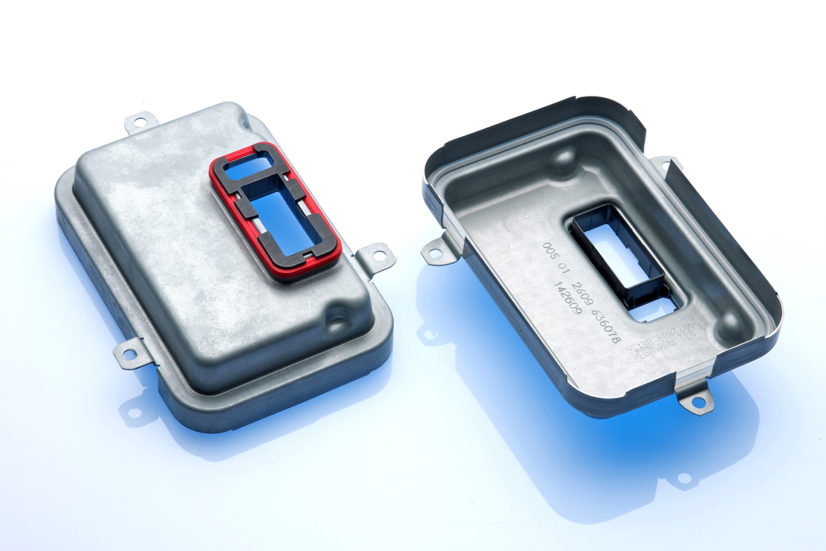 Nach dem Aufbringen der frei aufgetragenen Dichtung (Dispenstechnik) wird halbautomatisch ein Kunststoff-Rahmen in den Gehäuse-Deckel montiert. Anschließend wird noch eine, mittels der LSR-Spritzgusstechnik hergestellte, Formdichtung manuell montiert. Schließlich durchlaufen alle Teile noch eine 100%- Leckageprüfung mit Kennzeichnung der Gutteile.