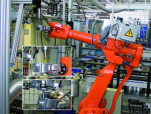 Für größere oder einfachere Bauteile wird der Prozess umgekehrt. Dann ist das Bauteil fest fixiert und die Auftragsdüse wird von einem Roboter exakt an die Auftragsstellen geführt.
