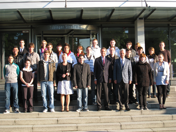 Nach der Begrüßung in der Hauptverwaltung in Reutlingen folgte das traditionelle Gruppenfoto aller Neulinge gemeinsam mit der Geschäftsleitung und Ausbildungsleiterin Gabriele Schmalacker.